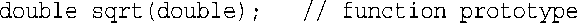 第一个double意味着sqrt( )将返回一个double值。括号中的double意味着sqrt( )需要一个double参数。因此该原型对sqrt( )的描述和下面代码中使用的函数相同: