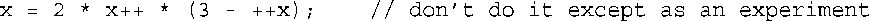 递增运算符和递减运算符都是漂亮的小型运算符,不过千万不要失去控制,在同一条语句对同一个值递增或递减多次。问题在于,规则“使用后修改”和“修改后使用”可能会变得模糊不清。也就是说,下面这条语句在不同的系统上将生成不同的结果:
