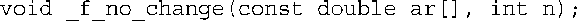 这些函数的特征标看似不同,但实际上相同。首先,前面说过,在函数原型中,参数列表const double ar [ ]与const double * ar的含义完全相同。其次,在函数原型中,可以省略标识符。因此,const double ar [ ]可简化为const double [ ],而const double * ar可简化为const double *。因此,上述所有函数特征标的含义都相同。另一方面,函数定义必须提供标识符,因此需要使用const double ar [ ]或const double * ar。