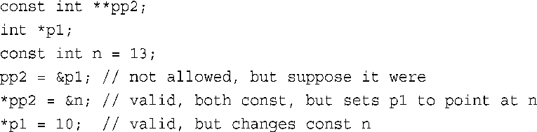 上述声明导致pc的类型与*pa一致,在程序清单7.19中,后面使用它时假定其类型与&pa相同,这将导致编译错误。