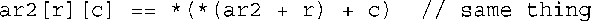 鉴于变量arr实际上就是一个指针,函数的其余部分是合理的。第4章在介绍动态数组时指出过,同数组名或指针一样,也可以用方括号数组表示法来访问数组元素。无论arr是指针还是数组名,表达式arr [3]都指的是数组的第4个元素。就目前而言,提请读者记住下面两个恒等式,将不会有任何坏处: