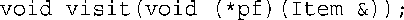 其中,pf指向一个将Item引用作为参数的函数(不是成员函数),Item是列表中数据项的类型。visit( )函数将该函数用于列表中的每个数据项。