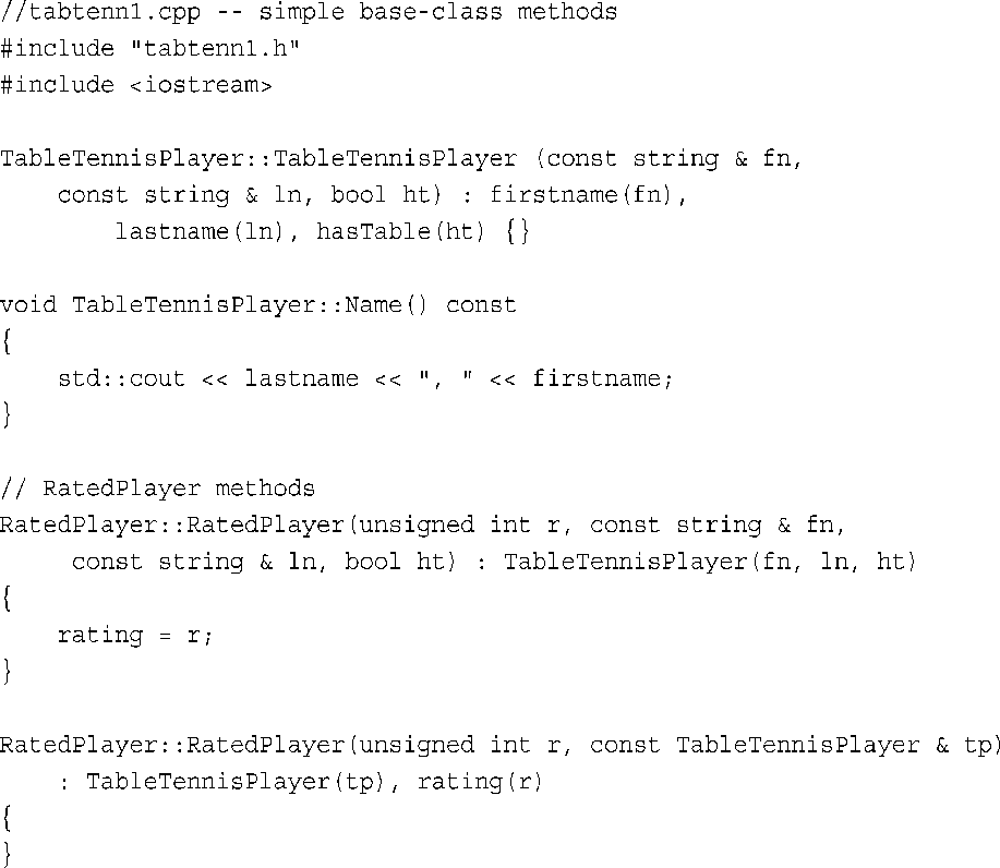 第一点没有什么新鲜的。RatedPlayer类在TableTennisPlayer类的基础上添加新数据成员和2个新方法的方式与此类似。