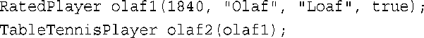 Webtown俱乐部的一些成员曾经参加过当地的乒乓球锦标赛,需要这样一个类,它能包括成员在比赛中的比分。与其从零开始,不如从TableTennisClass类派生出一个类。首先将RatedPlayer类声明为从TableTennisClass类派生而来: