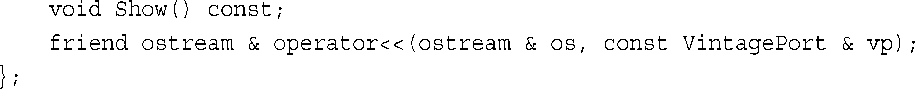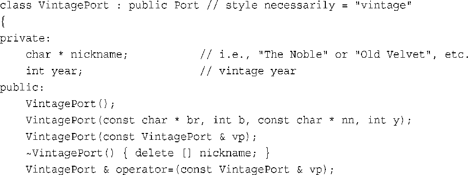 PortMaster完成了Port类的方法定义后派生了VintagePort类,然后被解职——因为不小心将一瓶45度Cockburn泼到了正在准备烤肉调料的人身上,VintagePort类如下所示: