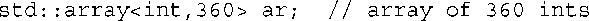 C++11还新增了模板array(这在第4和16章讨论过)。要实例化这种模板,可指定元素类型和固定的元素数: