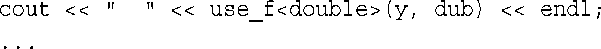 参数dub、Fp(5.0)等本身的类型并不是function<double(double)>,因此在use_f后面使用了<double>来指出所需的具体化。这样,T被设置为double,而std::function<T(T)>变成了std::function<double(double)>。